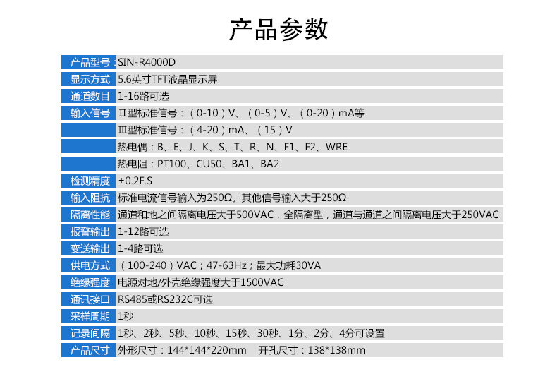 當前位置: 首頁 > 無紙記錄儀 → 聯測SIN-R4000D5.6英寸藍屏無紙記錄儀 →