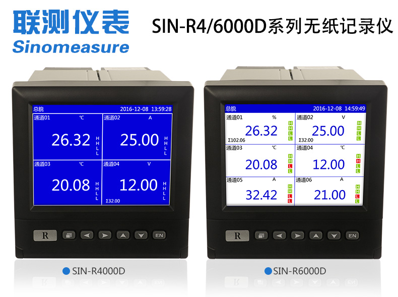 SIN-R4000D系列無紙記錄儀是一種高速高性能微處理器和5.6英寸單色液晶顯示屏,對現場各種溫度、壓力、流量、電量等信號實現監測、控制和記錄功能。 SIN-R4000D系列無紙記錄儀可自由組態輸入標準電流、標準電壓、熱電偶、熱電阻、頻率等信號,可實現為傳感器配電和繼電器報警輸出,并且可通過U盤或通訊方式與上位機進行數據交換。