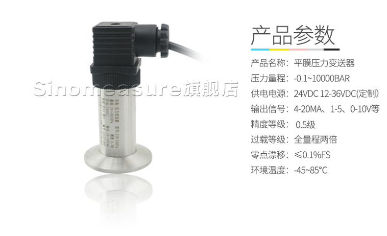 SIN-P350衛(wèi)生平膜型壓力變送器,衛(wèi)生平膜型液位變送器是測量端采用特殊堅固處理的齊平隔離膜片。結(jié)構(gòu)緊湊、耐腐蝕,抗震動、抗微粒沖擊、寬范圍溫度補償。膜片采用316L不銹鋼材料,特別適用于醫(yī)療、食品行業(yè)有衛(wèi)生要求的,粘稠流體壓力和液位測量,解決了結(jié)垢,堵塞,清潔衛(wèi)生等問題。高精度的信號處理電路位于將傳感器輸出信號轉(zhuǎn)換為標準輸出信號,可直接與計算機、控制儀表、顯示儀表等相連。采用一體化全不銹鋼結(jié)構(gòu),經(jīng)過多次不銹鋼焊接,實現(xiàn)了全固態(tài)設(shè)計,安裝方便。廣泛應(yīng)用于食品、醫(yī)藥、衛(wèi)生及釀酒工業(yè)等部門。